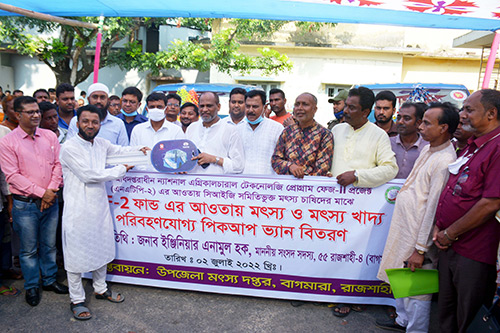 মচমইল থেকে সংবাদদাতা : মৎস্য অধিদপ্তরের ন্যাশনাল এগ্রিকালচারাল টেকনোলজি প্রোগ্রাম ফেজ-২ প্রজেক্ট (এনএটিপি-২) এর আওতায় রাজশাহীর বাগমারায় সিআইজি সমিতিভুক্ত মৎস্য চাষীদের মাঝে মৎস্য ও খাদ্য পরিবহণযোগ্য পিকআপ ভ্যান বিতরণ করা