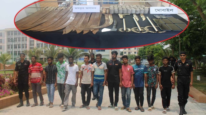 স্টাফ রিপোর্টার : ডাকাতির প্রস্তুতিকালে ‘মিজু গ্যাং’ এর মূলহোতাসহ ১১ জনকে গ্রেফতার করেছে র‌্যাপিড অ্যাকশন ব্যাটালিয়ন (র‌্যাব)। মঙ্গলবার (১৪ মে) দিবাগত রাতে নগরীর চন্দ্রিমা থানার ছোটবোনগ্রাম এলাকায় অভিযান চালিয়ে তাদেরকে