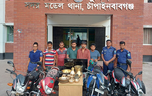 চাঁপাইনবাবগঞ্জ প্রতিনিধি : চাঁপাইনবাবগঞ্জে মোটরসাইকেল চোর চক্রের ৫ সদস্যকে আটক করেছে পুলিশ। চাঁপাইনবাবগঞ্জ সদর মডেল থানা পুলিশ বৃহস্পতিবার (০৭ জুলাই) রাত থেকে শুক্রবার (০৮ জুলাই) দুপুর পর্যন্ত অভিযান পরিচালনা করে