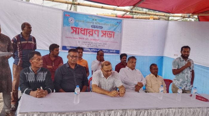 স্টাফ রিপোর্টার : রাজশাহী মহানগর ফার্নিচার শ্রমিক ইউনিয়ন এর তালাইমারি বালুঘাটে গতকাল শুক্রবার (৪ জুলাই) বিকালে সাধারণ সভা অনুষ্ঠিত হয়। সভায় সভাপতিত্ব করেন রাজশাহী মহানগর ফার্নিচার শ্রমিক ইউনিয়নের সভাপতি মো. মোজ্জামেল হক। সভায় প্রধান অতিথি ছিলেন মিনিস্টারি অফ লেবারের সহকারী পরিচালক মো. মিজানুর রহমান। বিশেষ অতিথি ছিলেন জাতীয়তাবাদী শ্রমিক দল রাজশাহী জেলা শাখার সভাপতি ওয়াদুদ-উল-মো.তাকাদ্দাছ কাজল। বিশেষ অতিথি ছিলেন জজ কোর্ট, রাজশাহীর এ্যাড. মো. আরিফুর রহমান। সভায় বক্তব্য রাখেন, রাজশাহী মহানগর ফার্নিচার শ্রমিক ইউনিয়নের সদস্য মো. রফিকুল ইসলাম, সহ সভাপতি মো. আব্দুর রশিদ, দপ্তর সম্পাদক মো. জারজিশ। সভা পরিচালনা করেন, সদস্য মো. কামাল হোসেন সরকার, সভায় সর্বসম্মতি ক্রমে আগামী ৪৫ দিনের মধ্যে অত্র ইউনিয়নের একটি সুন্দর সুষ্ঠ নির্বাচন পরিচালনা করার জন্য ৩ সদস্য এর নির্বাচন কমিশন গঠন করা হয়। এ্যাড. মো. আরিফুর রহমান কে প্রধান করে এবং ওয়াদুদ-উল-মো. তাকাদ্দাছ কাজল ও মো. রফিকুল ইসলামসহ নির্বাচন কমিশন গঠন করা হয়। সভা শেষ সভাপতি সকল শ্রমিক এর সুস্থ দীর্ঘায়ু কামনা ও মহান আল্লাহ পাক এর নিকটে শুকরিয়া আদায় করে সভা শেষ করেন।
